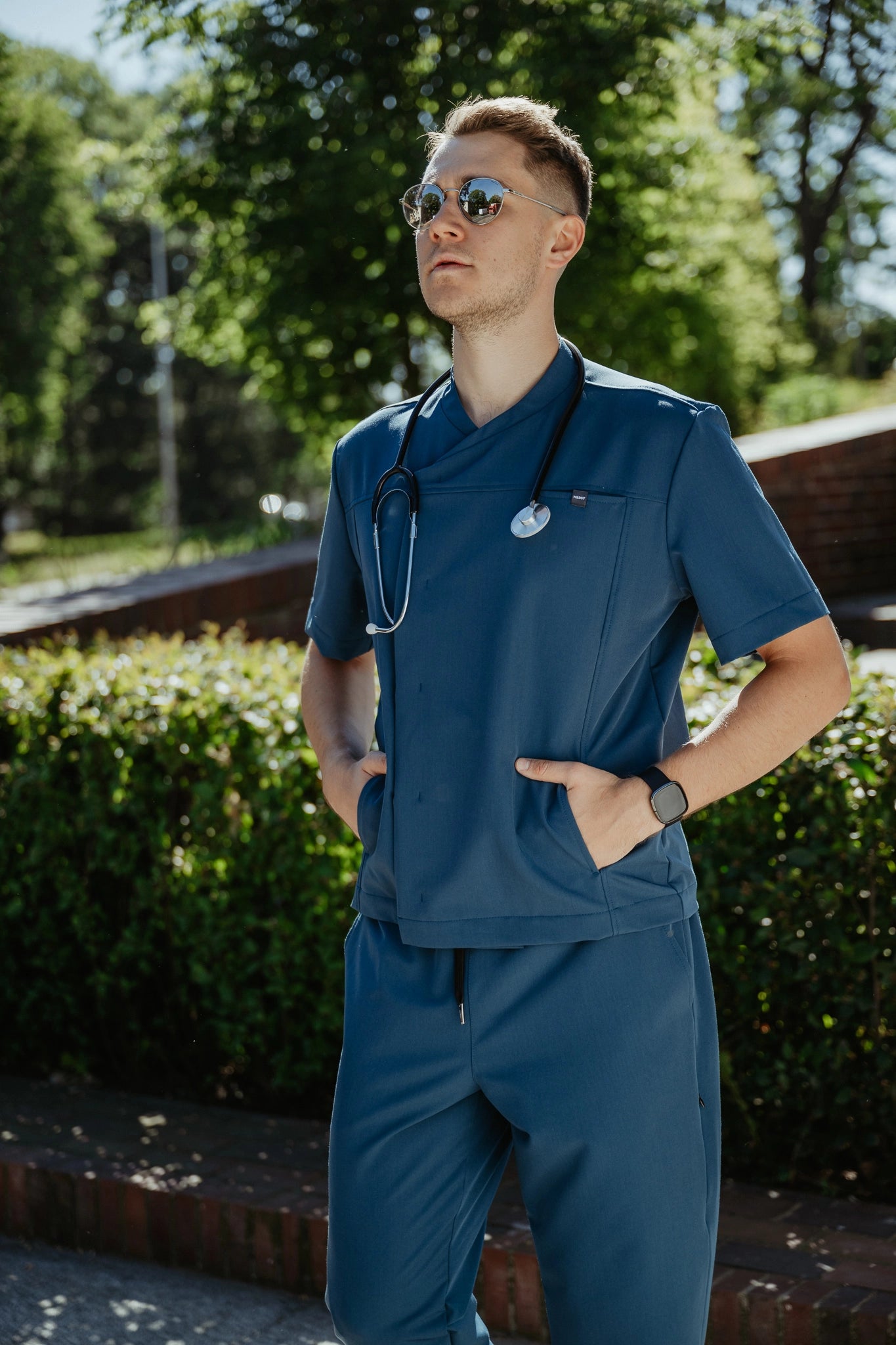Niezwykle męska, zapinana z boku bluza medyczna MONAKO.