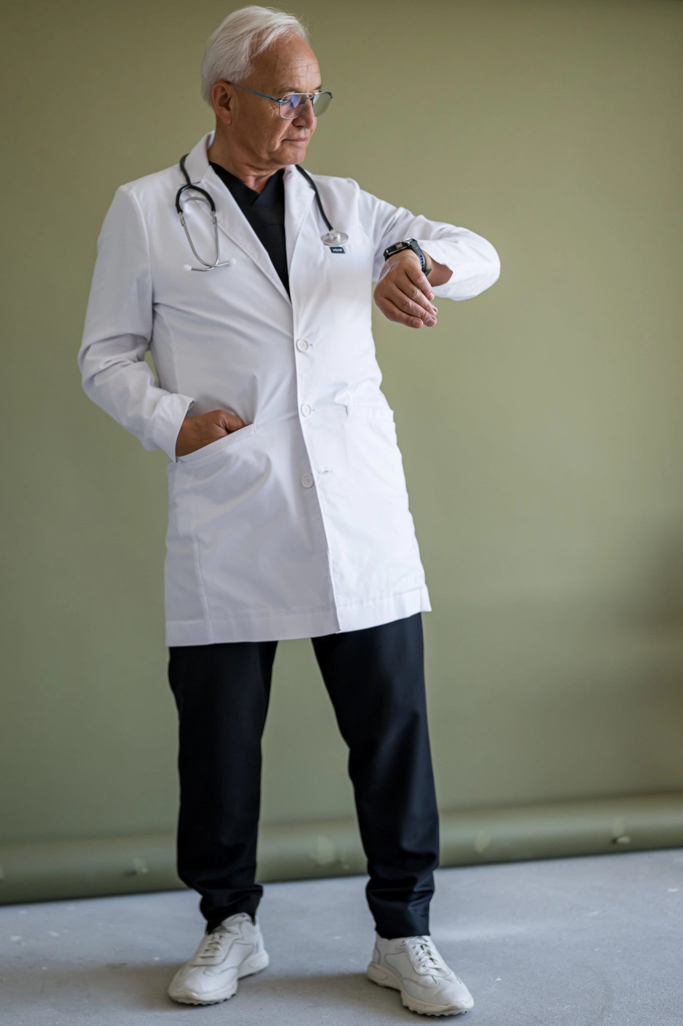 Tradycyjny model męskiego fartuch medycznego, łączy w sobie praktyczność i elegancję, spełniając oczekiwania najbardziej wymagających mężczyzn ceniących sobie klasykę.